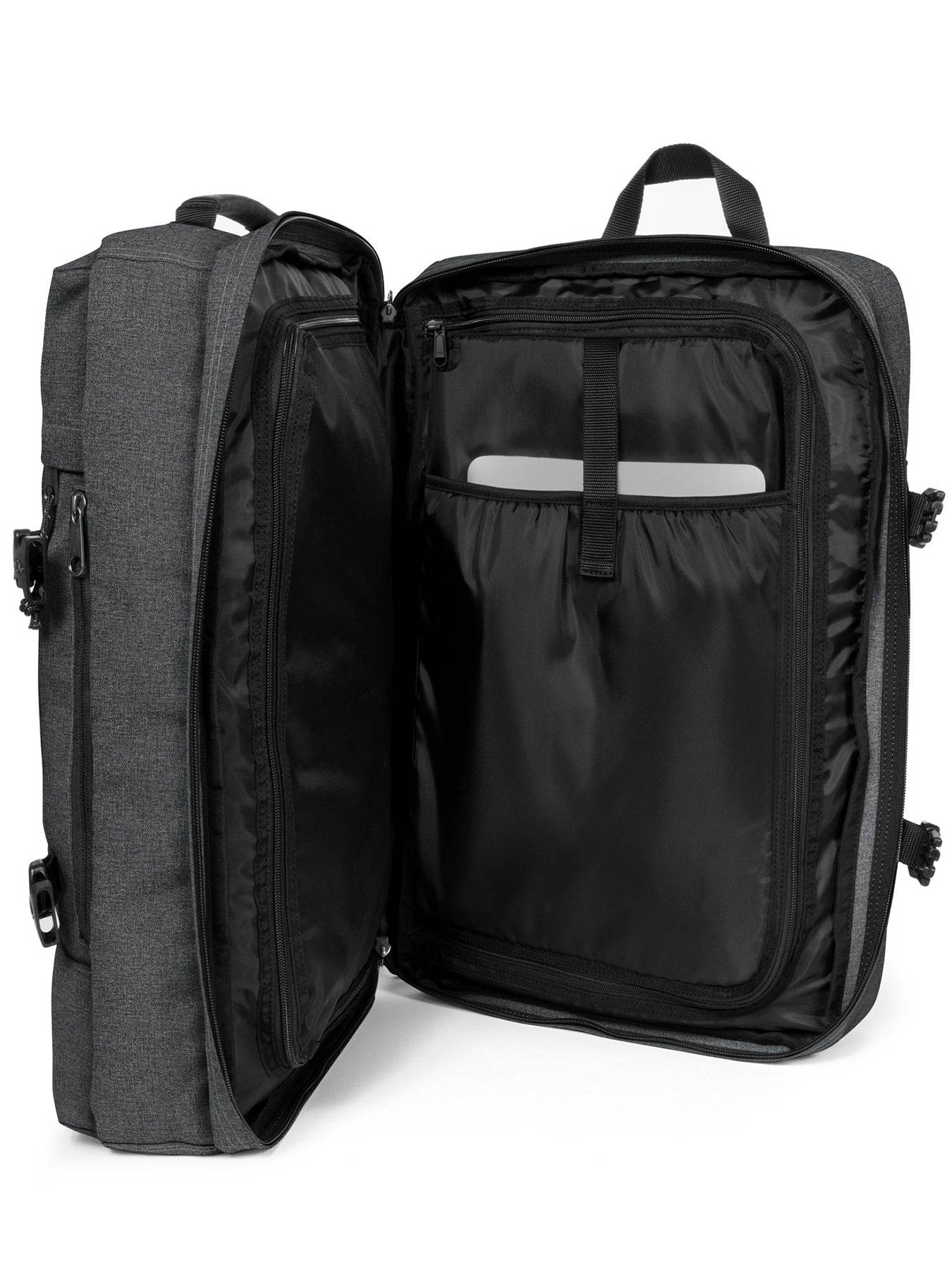 Eastpak accompanies you on your weekend trips with this polyester cabin travel bag. This travel bag is really practical thanks to its large storage space organised in two separate zipped compartments. You will also find a special computer compartment inside this Eastpak bag. Equipped with padded shoulder straps and two handles, you can choose to carry this Eastpak travel bag on your back or in your hand as you wish. Thanks to its dimensions respecting the standards of cabin luggage, you will be able to take the plane with this Eastpak travel bag.