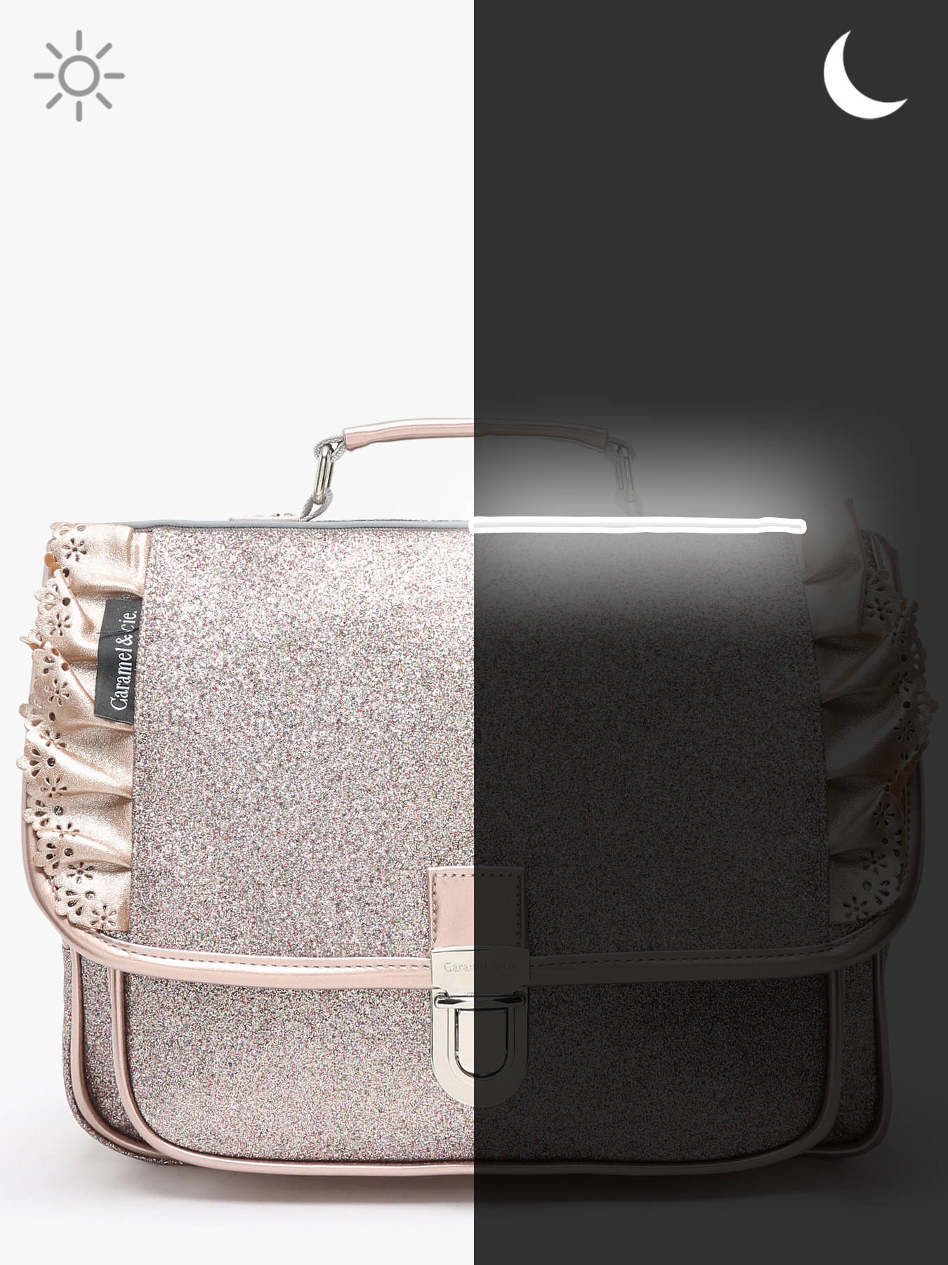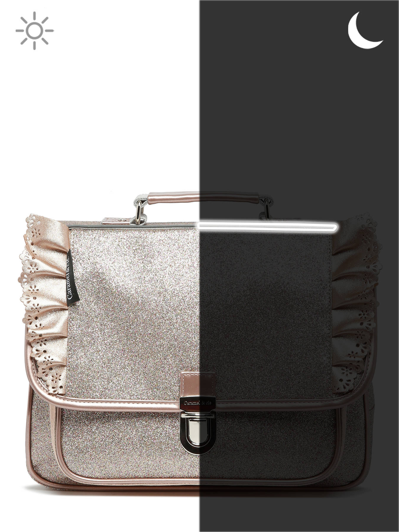 Le cartable CARAMEL ET CIE est spécialement conçu pour les enfants en classe maternelle. Il offre un espace de rangement pratique avec une poche avant pour ranger les petits objets essentiels. Les bretelles réglables permettent un ajustement personnalisé pour un meilleur confort. La fermeture à rabat avec fermoir assure la sécurité des affaires à l'intérieur du cartable. Il peut être porté à la main ou sur le dos, offrant différentes options de portée selon les préférences de l'enfant. À l'intérieur, il dispose d'un compartiment spacieux pour organiser les fournitures scolaires. De plus, le cartable est doté de bandes réfléchissantes pour une meilleure visibilité et de jolis motifs brillants qui ajoutent une touche d'élégance. Le cartable CARAMEL ET CIE est à la fois fonctionnel et attrayant pour accompagner les enfants à l'école.