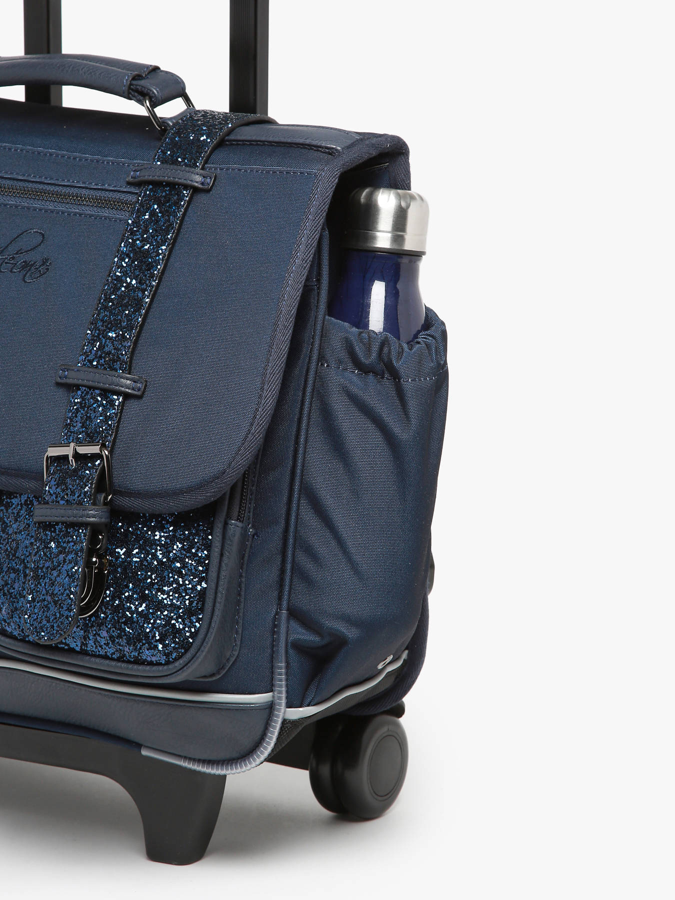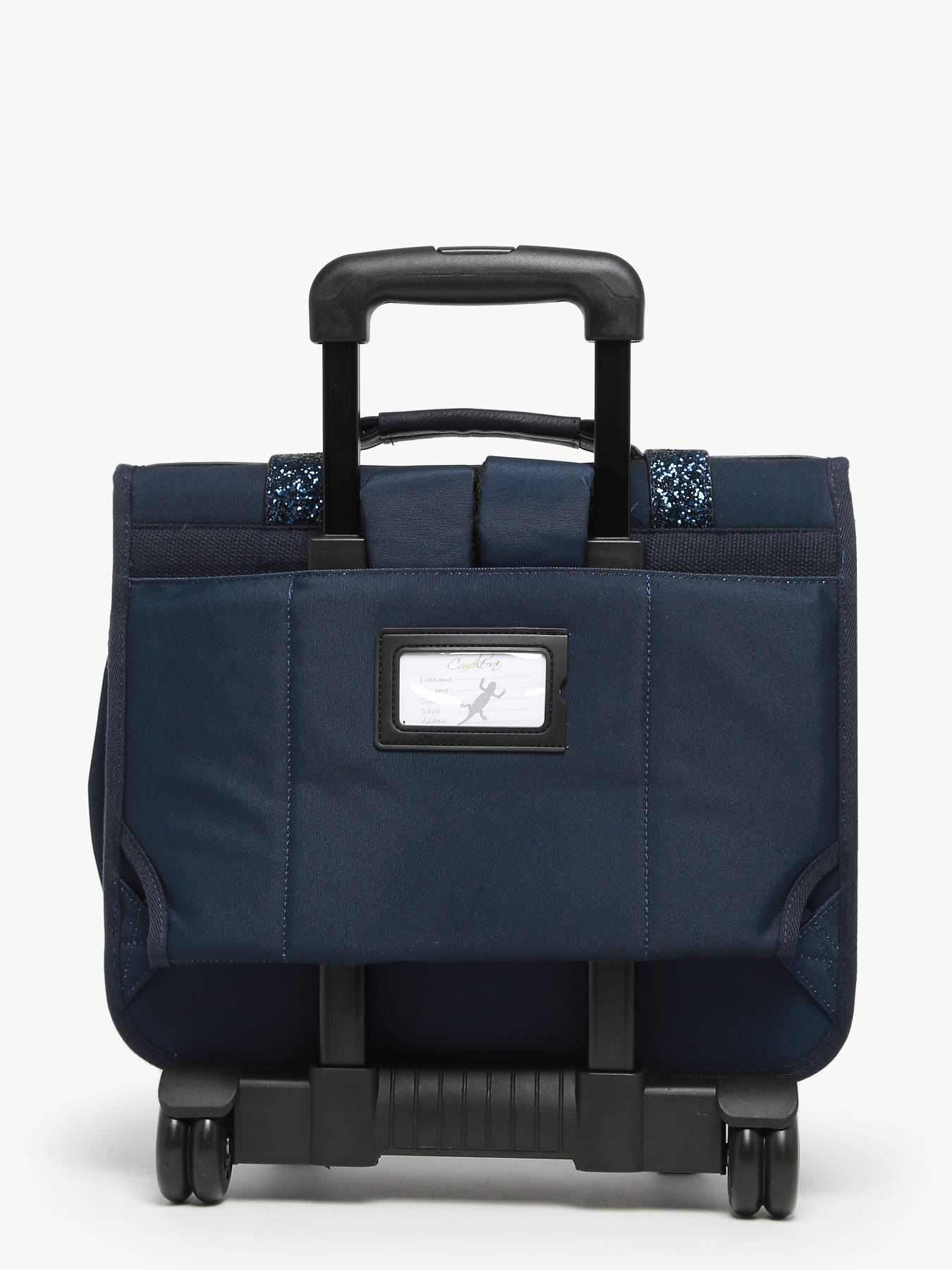 38 cm - 21 litres - 2.38 kg ~ Cartable à roulettes 38 cm de la ligne Vintage Fantasy signé Caméléon. Idéal pour le CP, CE1 et CE2. Composé de 2 compartiments séparés par une poche centrale zippée, ce cartable enfant est pensé pour ranger toutes les affaires scolaires. Les trois poches extérieures zippées sont idéales pour ranger les petits effets comme l'agenda ou le goûter. Fonctionnel, le cartable a un emplacement pour la gourde à l'extérieur. Pour faire rouler le cartable, les bretelles doivent être rangées dans la poche au dos. A la fois renforcé et rembourré, ce modèle assure confort et résistance. Côté sécurité, ce cartable dispose de bandes réfléchissantes sur le devant et sur les bretelles du cartable. Le cartable à roulettes Caméléon est fabriqué en polyester recyclé imperméable. Petit plus, la règle est offerte !