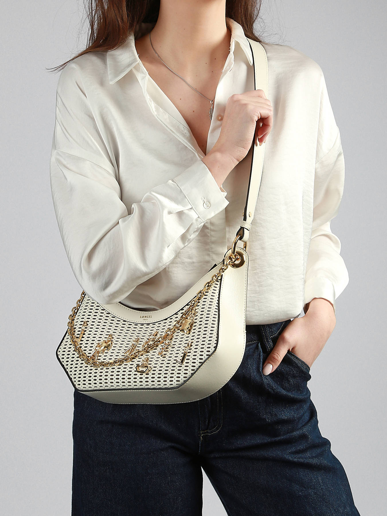 The CROISETTE LANCEL crossbody bag, crafted from cowhide leather, combines elegance and practicality for everyday use. Its exterior features a secure zip closure, while the adjustable and removable strap allows comfortable crossbody wear as desired. Inside, a main compartment provides ample space for essentials such as your phone, wallet, or small accessories, ensuring organization and accessibility. Lightweight, refined, and durable, this CROISETTE LANCEL bag stands out for its high-quality materials and clean design, adding a modern and chic touch to any outfit. Perfect for those seeking a practical, elegant, and versatile bag, it is an essential accessory for daily use.