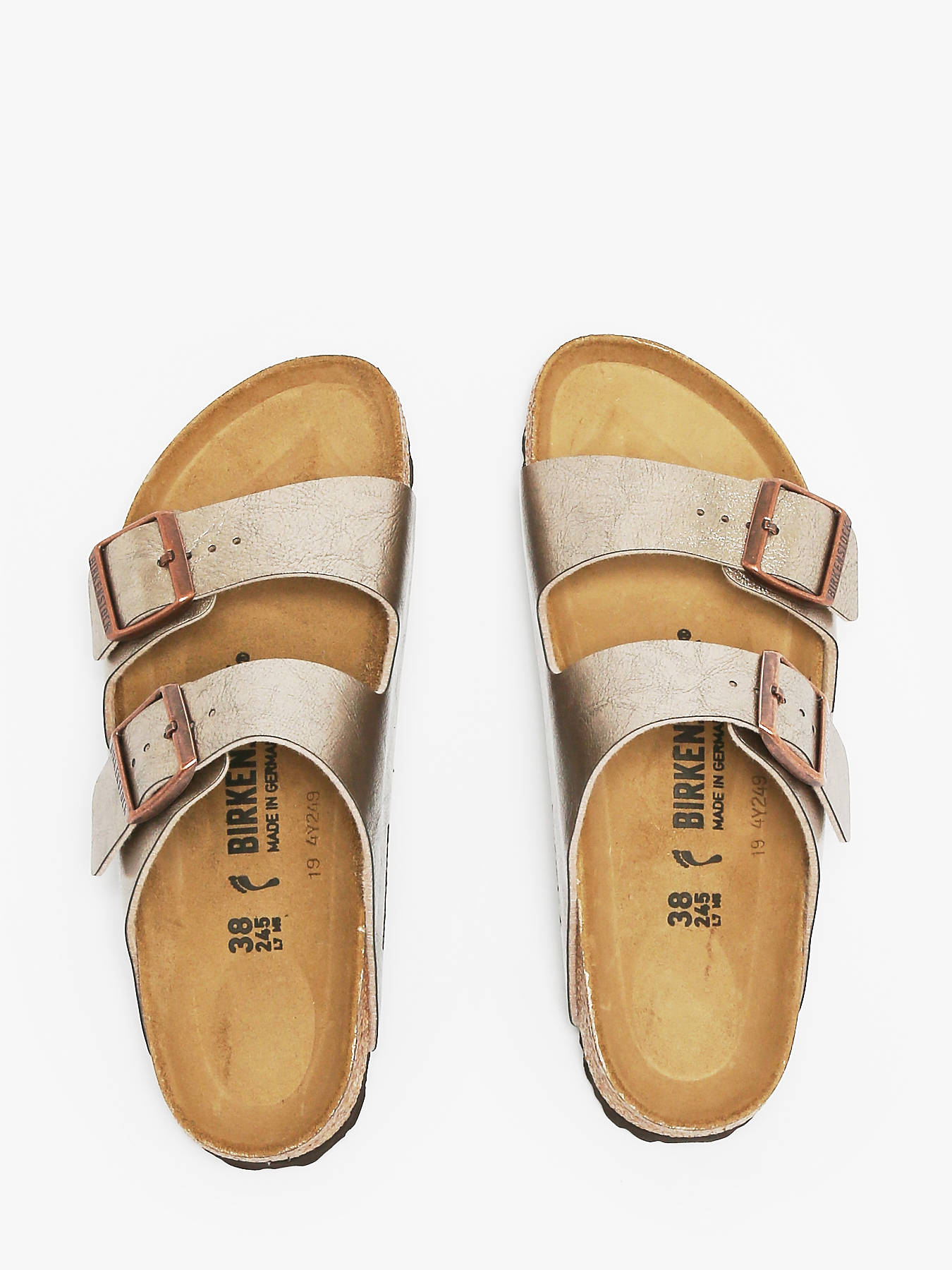 Les mules Arizona de BIRKENSTOCK sont un classique revisité avec une touche scintillante pour un style raffiné au quotidien. Ce modèle iconique à deux brides conserve son confort légendaire tout en adoptant un look élégant grâce à son revêtement satiné. Le dessus est en Birko-Flor®, une matière synthétique innovante, hypoallergénique et particulièrement résistante, idéale pour un usage régulier. Le lit de pied anatomique en liège et latex soutient naturellement la voûte plantaire, tandis que la semelle de propreté en cuir velours apporte douceur et respirabilité. La semelle extérieure en EVA, légère et souple, assure un excellent amorti. Fabriquées en Allemagne, ces sandales sont l’alliance parfaite entre fonctionnalité, style et qualité.