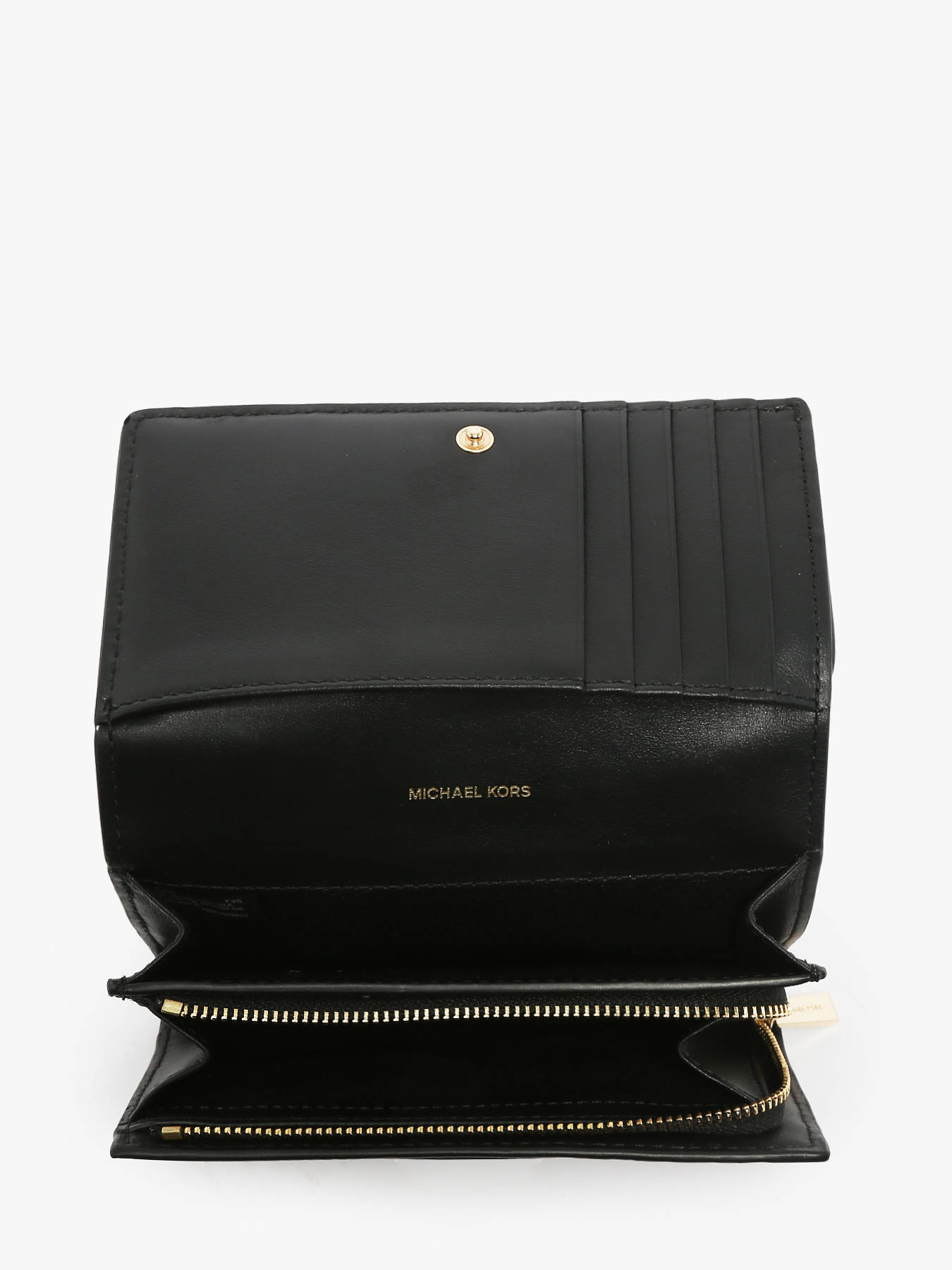 Le portefeuille MICHAEL KORS en cuir de vachette allie élégance et fonctionnalité. Son extérieur raffiné présente deux poches principales, une poche avant et une poche au dos pour un accès facile à vos petits indispensables. La fermeture se fait par un rabat à pression sécurisant, garantissant la protection de vos effets personnels. À l’intérieur, ce portefeuille est conçu pour organiser parfaitement vos affaires : il dispose d’une poche simple, de cinq emplacements pour cartes bancaires, d’une poche pour billets ainsi qu’une poche zippée pour les pièces ou objets précieux. Compact et pratique, il se glisse aisément dans un sac à main tout en offrant un espace de rangement optimisé. Ce portefeuille est idéal pour celles et ceux qui recherchent un accessoire chic et fonctionnel au quotidien.