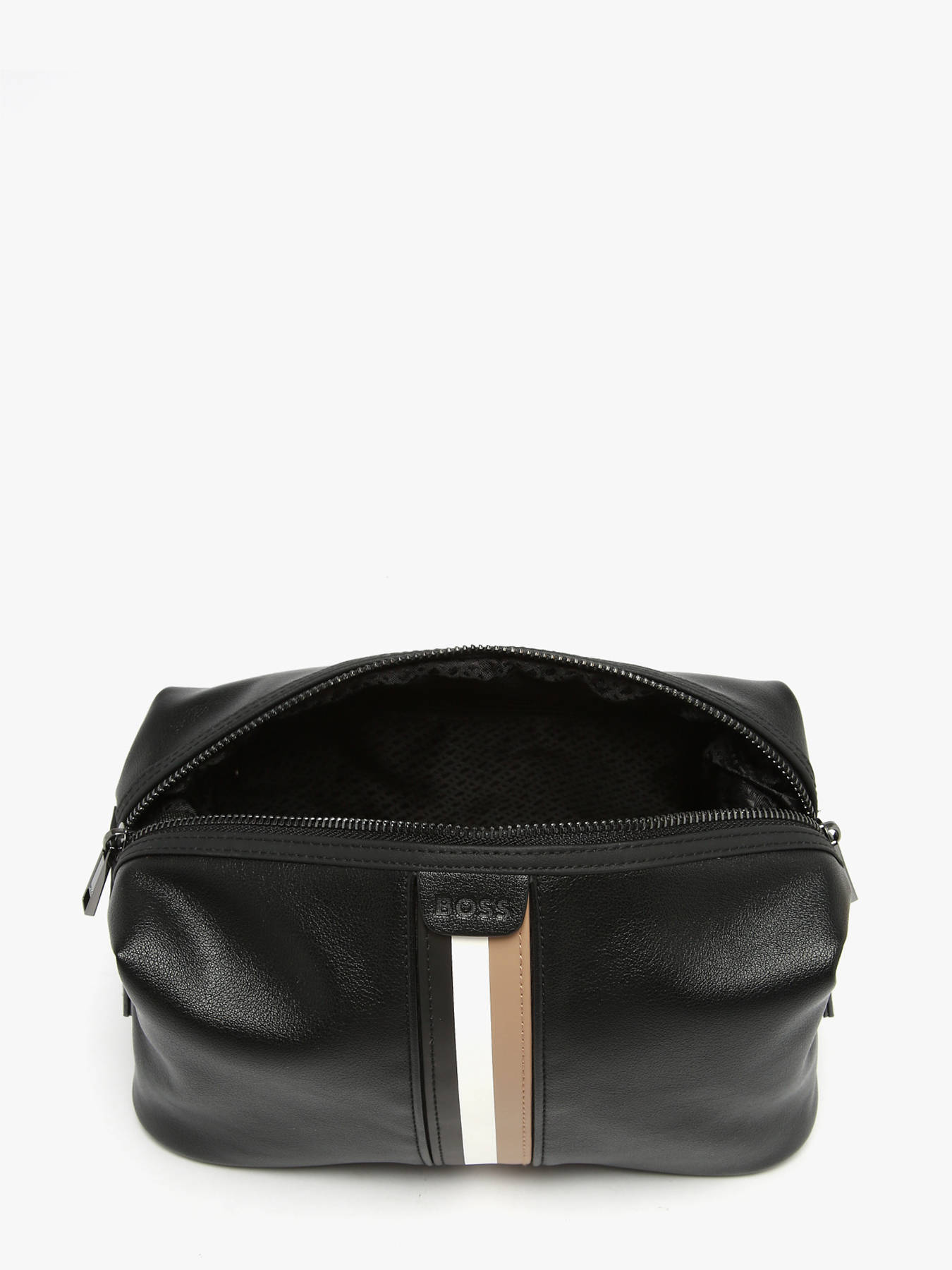 The Hugo Boss Iconic toiletry bag embodies modern elegance and the refined spirit of the brand. Crafted from synthetic trimmed leather, it features a smooth and sleek finish that gives it a timeless appearance. Its compact structure makes it easy to carry while ensuring durability for daily use or travel. The interior includes a spacious main compartment for your grooming essentials, along with a convenient zip pocket to safely store small items. A sturdy zipper ensures smooth opening and adds a premium feel. Perfect for trips or as a stylish bathroom accessory, this toiletry bag stands out with its clean design and practicality. An essential choice for anyone who values functional, elegant, and long-lasting leather goods in everyday life.
